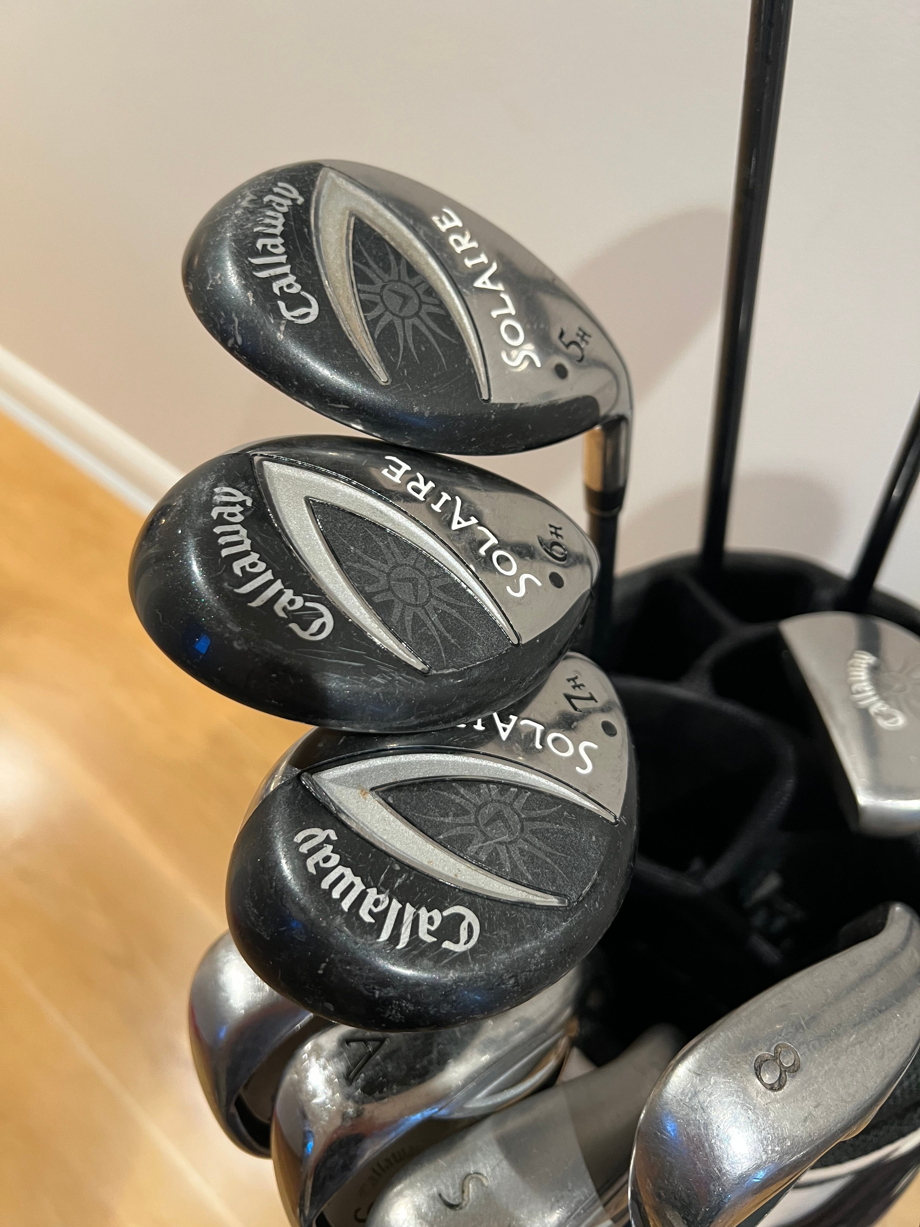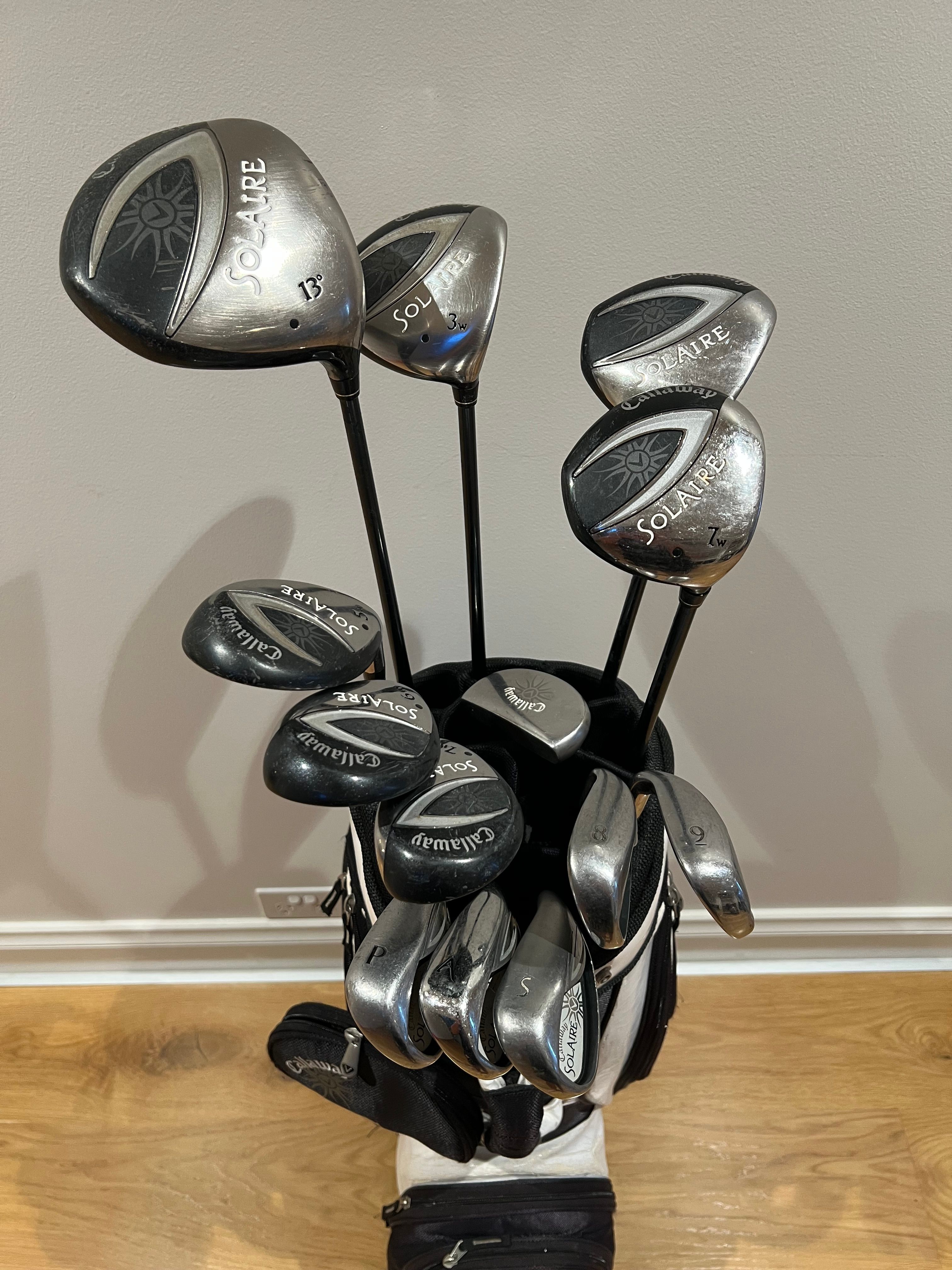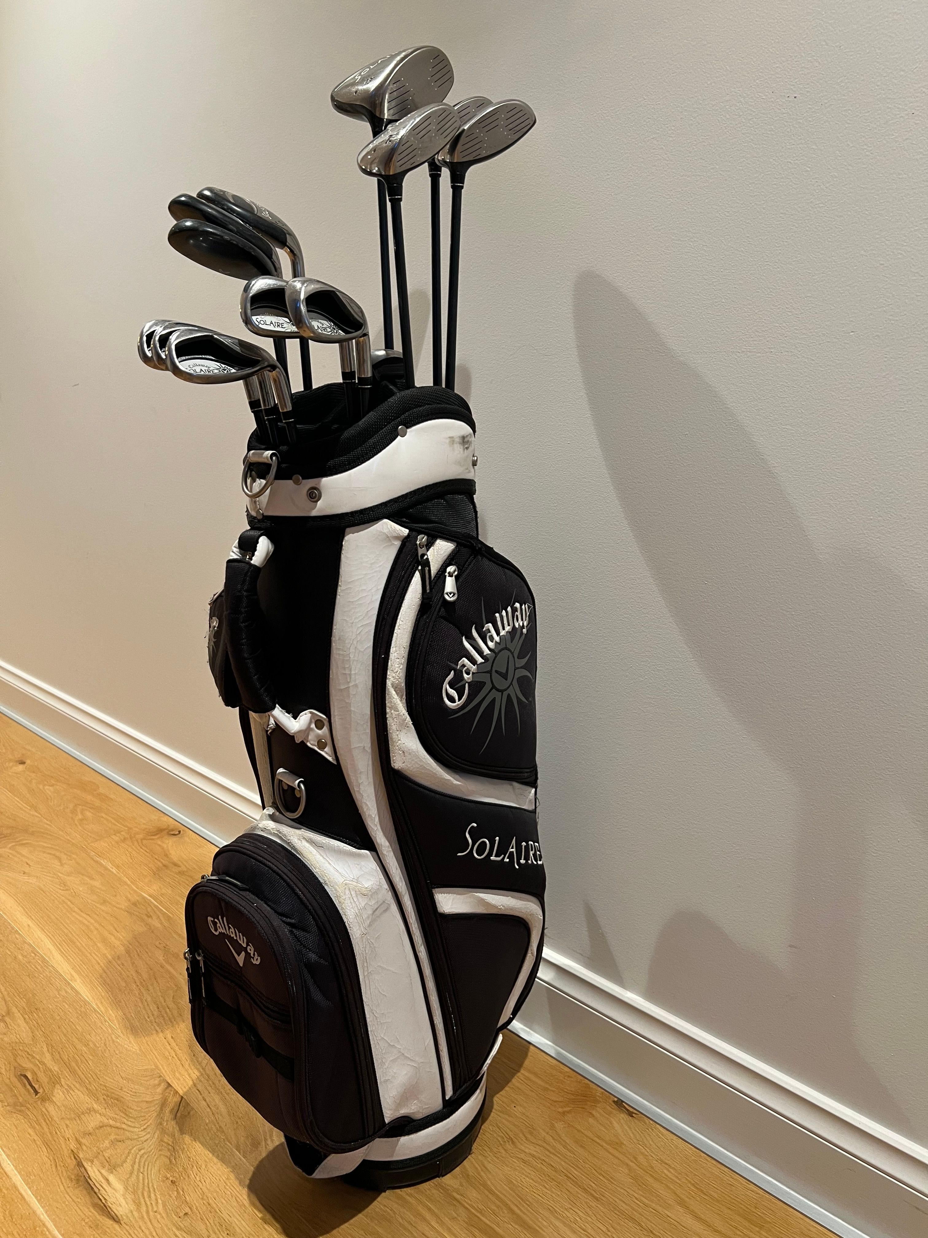 Up for sale is a Callaway Solaire Ladies club Set including golf bag. The clubs are in used condition and will require grip changes on most clubs. Selling this off cheap so please no offers - eBay has the same single clubs going for $100ea. I’ll only be accepting pickup for this item due to size and weight. However, please reach out if you are interested in having the item shipped as it can be sent via Pack & Send.